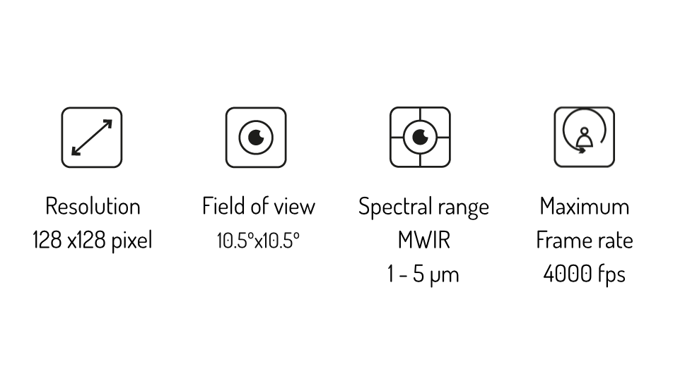 DATA TRANSMISSION MODES | RAW data, 14 bit | Selectable: – RAW data, 14 bit – NUC corrected, 16 bit – High-speed mode RAW/NUC: 12 bit |